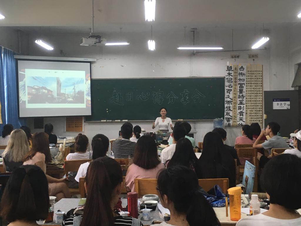 随后桑婷同学从文化体验、学校参观体会、企业参会体会三方面讲述了交流团十天以来在日本的学习生活,带领大家感受了日本文化的独特和日本民众的热情与严谨,同时通过讲述日本教育模式引导在场的全体同学认真学习日本学生勇于实践、突破自我的精神,积极参与社会实践活动,为成为一名优秀的大学生和合格的人民教师打下坚实的基础。同学们认真倾听,仿佛置身其中。在活动最后的提问环节,同学们根据学姐的分享积极发问,桑婷同学一一做出回答并鼓励同学们通过自己的努力去到想去的地方,看不一样的风景。