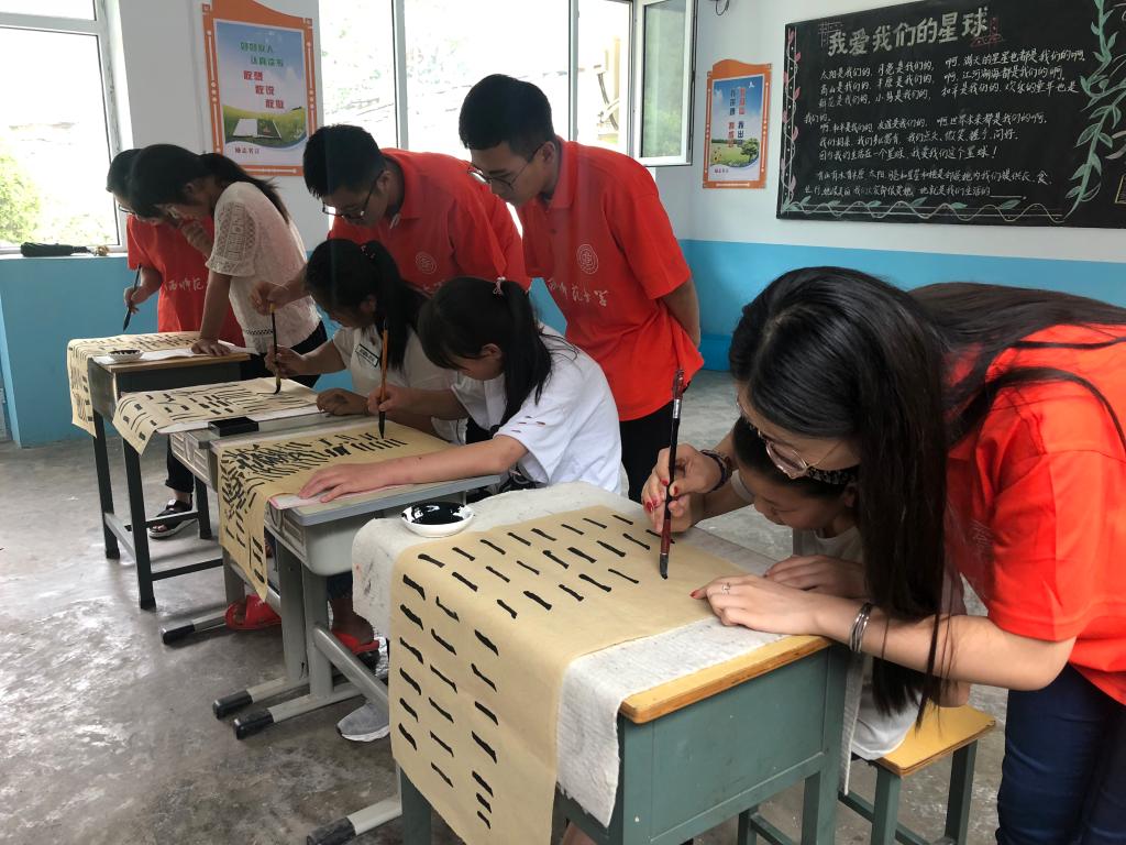孩子们似乎第一次真正接触书法这门课程。当队员们展示出毛笔、砚台、墨汁、宣纸,钢笔,硬笔本等书法工具后,孩子们天真质朴的面庞无不透露出好奇与渴望。在几次的实践练习后,他们也深深的爱上了书法。书法,不仅是书写汉字,更是在提高书写水平中激发对艺术的兴趣,传承和弘扬中国优秀传统文化。在学习中,他们的虚心,他们的认真,他们的聪明以及对新知识的渴求让队员们觉得肩上的担子变得极为沉重。