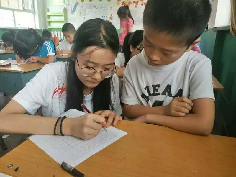 通过对当地教学情况的考察,与小学校长取得联系后,实践服务队在苏村小学开展了第二个项目——“书法学习课堂”。孩子们对队员们的到来表示热烈欢迎,在课堂上孩子们交流互动频繁,气氛轻松愉快,教学过程中,实践队成员向孩子们传达了习近平总书记对青年的寄语以及六一儿童节习近平对儿童回信。青少年是祖国的未来,希望通过此次活动可以帮助苏村小学的孩子们树立正确的价值观,深刻体会习近平总书记和党中央对他们的期待与爱护,为中国梦的实现努力学习,成长为栋梁之才。
