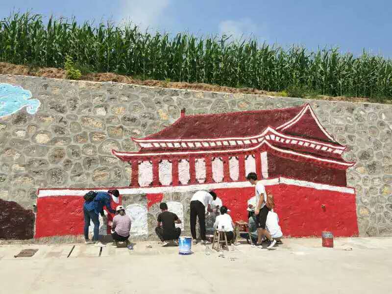 在前期策划完备后,队员们在苏村宣传墙开始了十九大主题墙绘的制作。炎炎烈日下队员们有条不紊的进行着墙绘,大家分工明确,配合默契,遇到困难相互鼓励,没有任何人喊过累。从太阳当头到夕阳西下,从简单勾勒到墙绘的完美呈现,队员们将十九大精神和社会主义核心价值观通过生动活泼的形式,展现在村民面前,让十九大精神和社会主义核心价值观融入村民的生活之中,潜移默化地影响村民的价值观,让新时代思想扎根于普通民众思想中,为推进十九大精神在广大群众中贯彻落实和社会主义核心价值观构建贡献出自己的微薄力量。