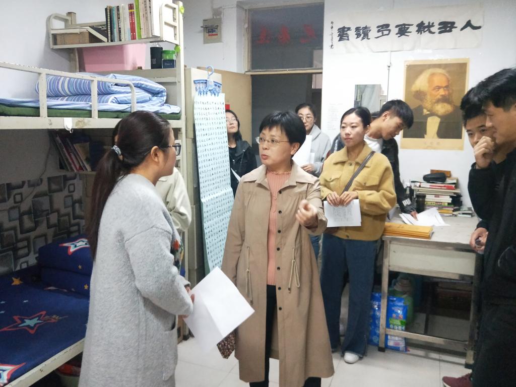在检查过程中,老师和同学们深入到每一个宿舍,详细检查是否存在安全隐患、东西是否摆放有序、宿舍是否干净卫生、宿舍成员是否文明礼貌、宿舍的文化特色等。霍红梅副书记充分肯定了同学们宿舍文化建设的成效,并有针对性地指出了各个宿舍存在的不足和需要改进的措施。她希望同学们进一步增强宿舍文化建设的积极性、主动性,进一步增强集体荣誉感和爱校情怀,再接再厉,共同维护宿舍安全卫生,共同创建文明宿舍,以饱满的热情,良好的精神风貌和宿舍环境迎接教育部对我校的本科教学审核评估。