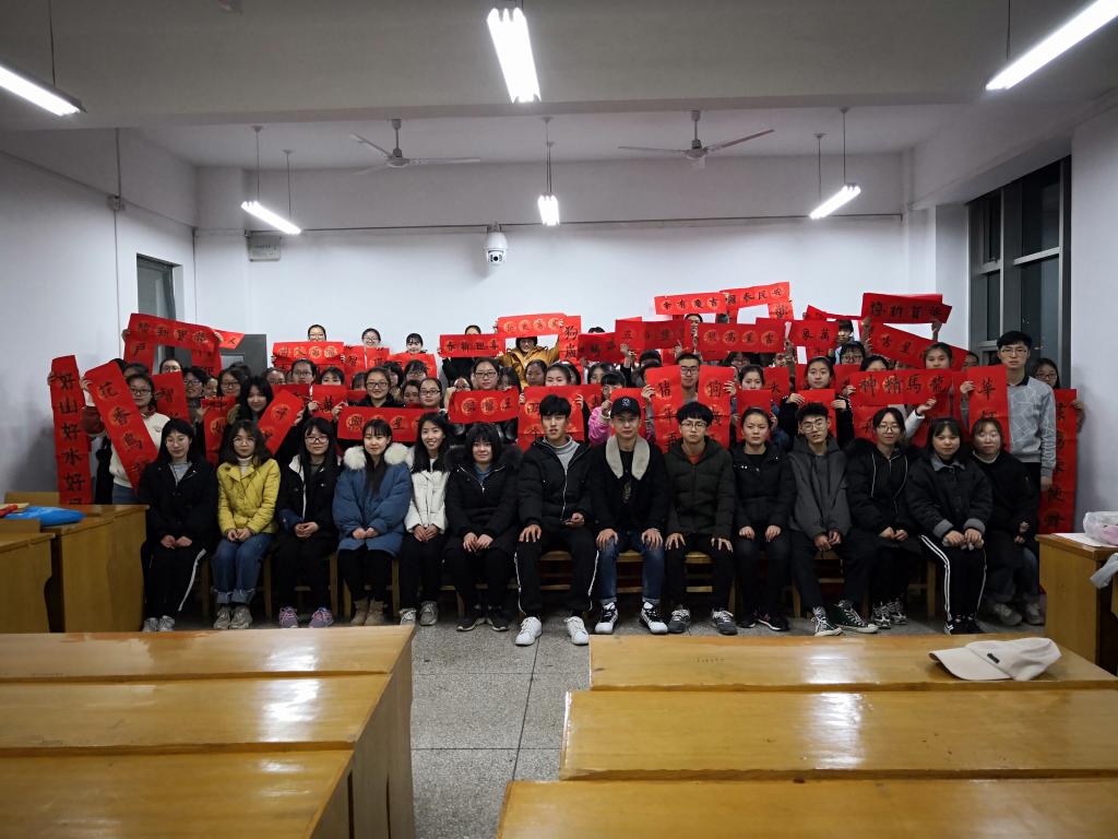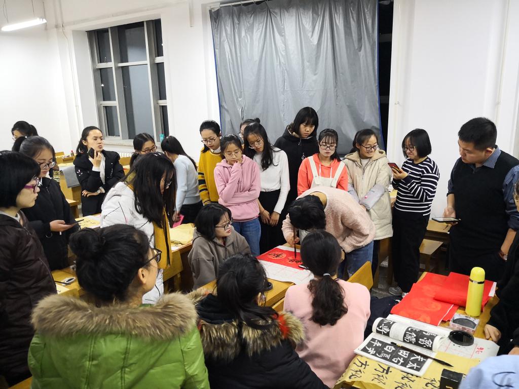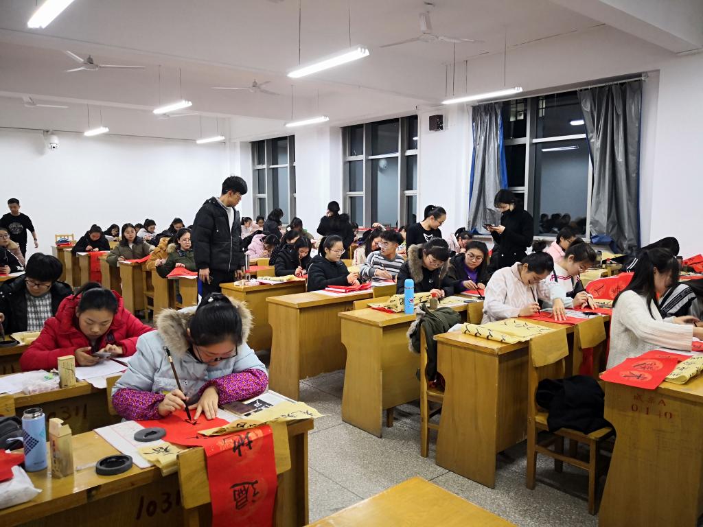 为了迎接即将到来的传统节日——春节,2018年12月23日晚,我院书法爱好者协会在10号楼举行了“书写春联”活动,此次活动以弘扬中国优秀传统文化为宗旨,得到了同学们的广泛好评。