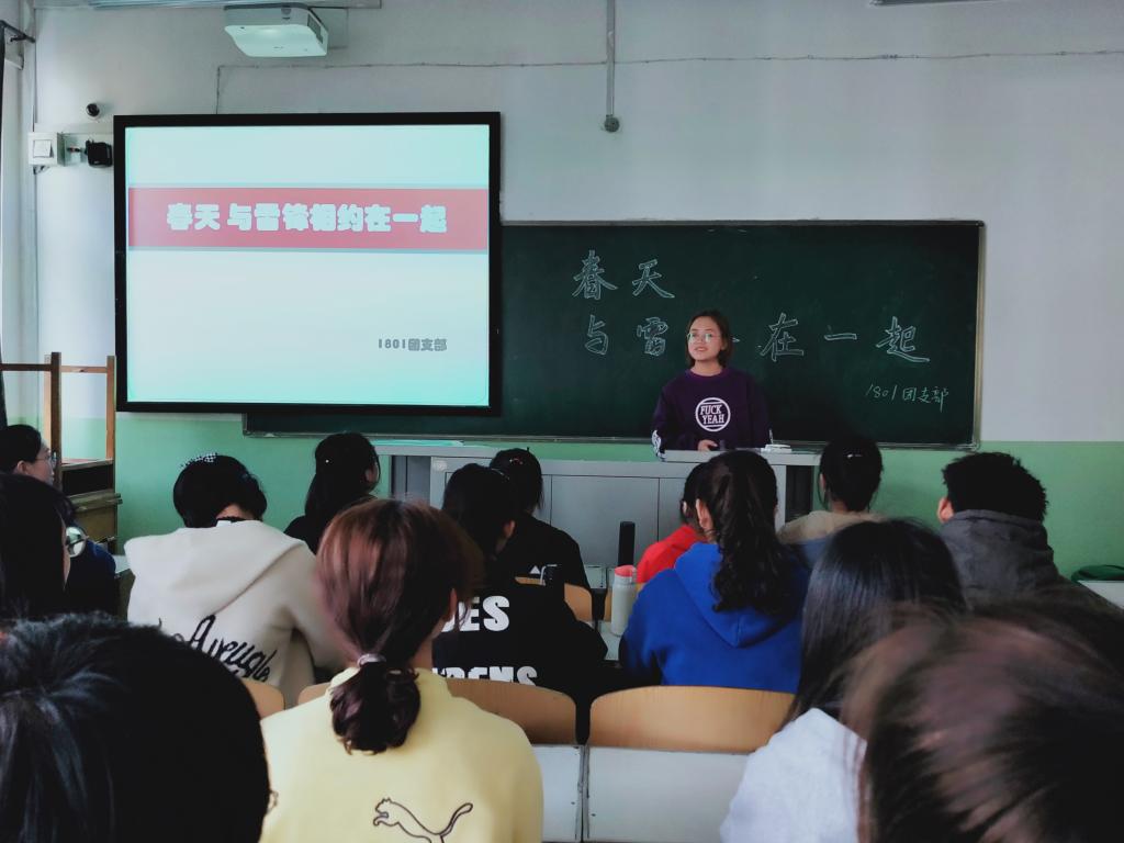 1801团支部在01316教室开展了“春天与雷锋相约在一起”主题团日活动。活动由团支书樊雅菁主持,支部全体团员参加。