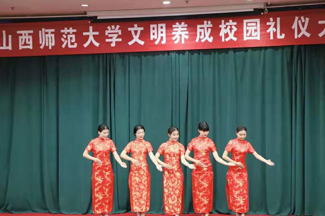在第一环节礼仪知识竞赛中,我院选手自信大方,积极作答,充分展示了我院学生的文化底蕴;在第二环节礼仪展示中,我院的五位参赛学生身着具有中国风特色的旗袍,在舞台上展示规范的礼仪动作。标准的站姿、温柔的笑脸洋溢着青春风采。