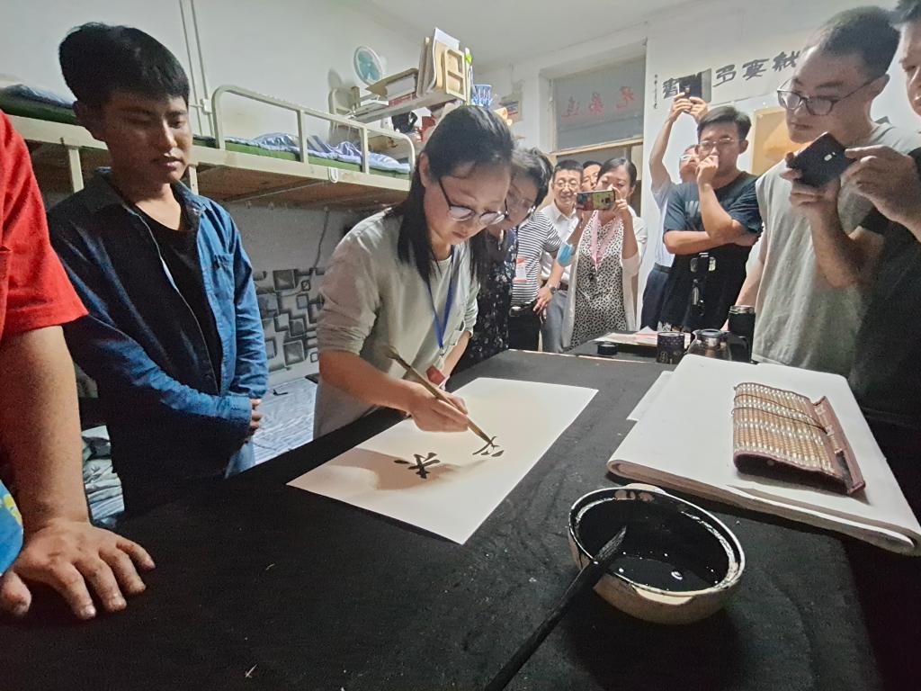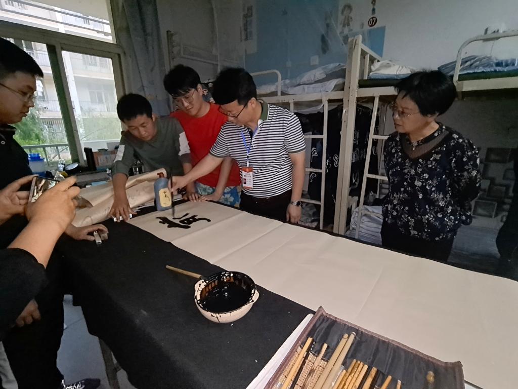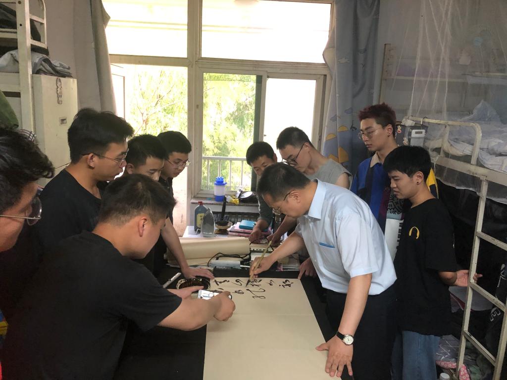 在新松学生宿舍,院长薛珠峰、副院长曹亚彬、专业教师黄玉岩三位老师挥毫泼墨,用手中的毛笔写下了对毕业生的深情祝福和殷切期望。毕业生们纷纷表达了对学校和老师的留恋与不舍,表示一定会谨记学院老师们的嘱托,努力学习工作,常回来看看。