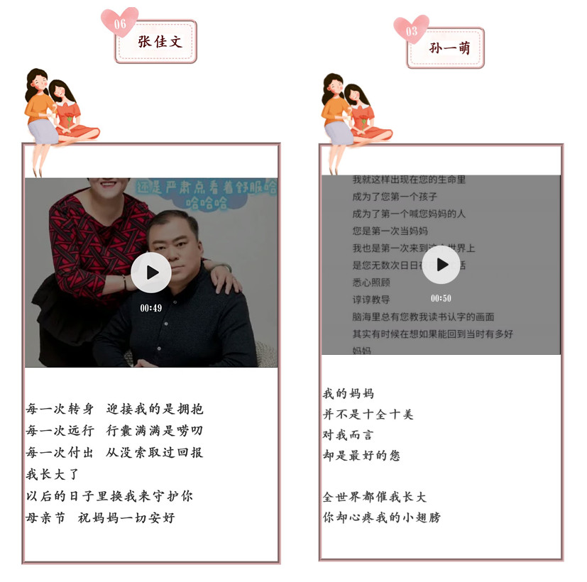 “你陪我长大,我陪你变老”。在此次母亲节主题活动中,学生们感受到了母亲的无私付出和母爱的伟大,进一步激发了学生们对母亲的感恩之情。