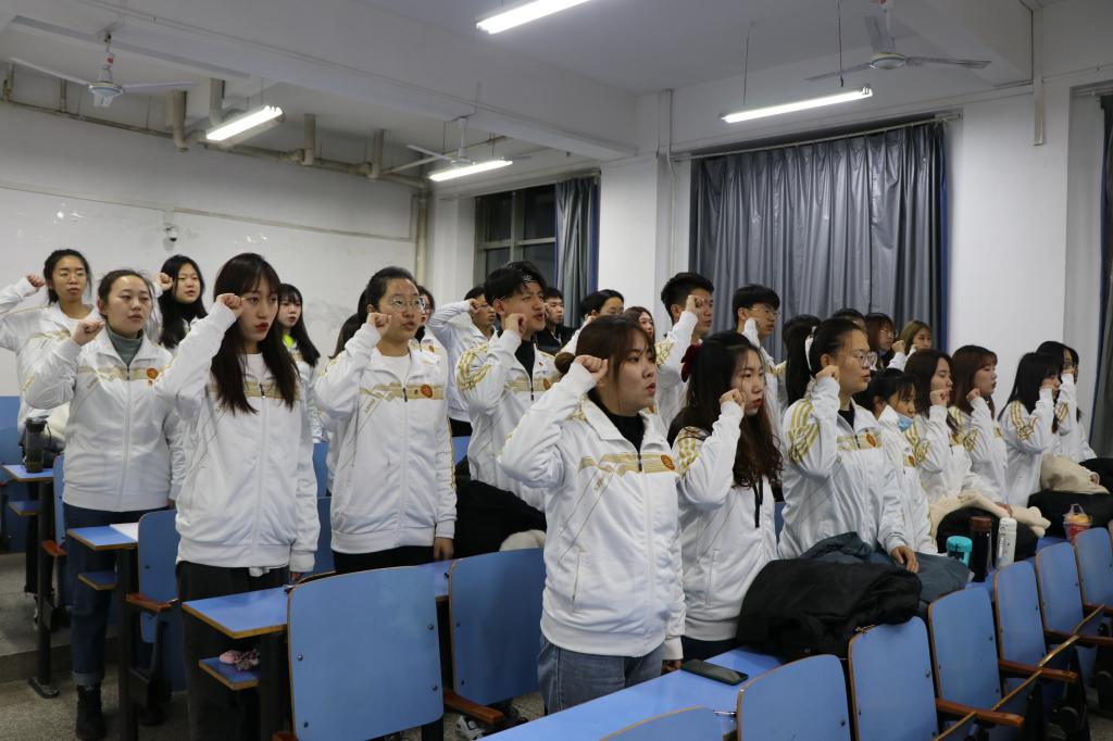 在庄严的国歌中,本次活动拉开了序幕。活动中,宁译锐向全体学员介绍了青年马克思主义工程的重要内涵和团学骨干培训的主要目的,强调了此次培训的相关纪律要求,希望全体成员能够通过本次培训提高个人综合素质,加强沟通交流;2001班张楚彬作为青马学员代表上台发言,展现了青马学员积极向上的青春风采;团学骨干、素拓师代表张佳文带领全体学员进行宣誓,坚定全体学员的学习信念,大家铿锵有力的声音回荡在整个活动现场。最后,在嘹亮的团歌声中,本次开班仪式圆满结束。