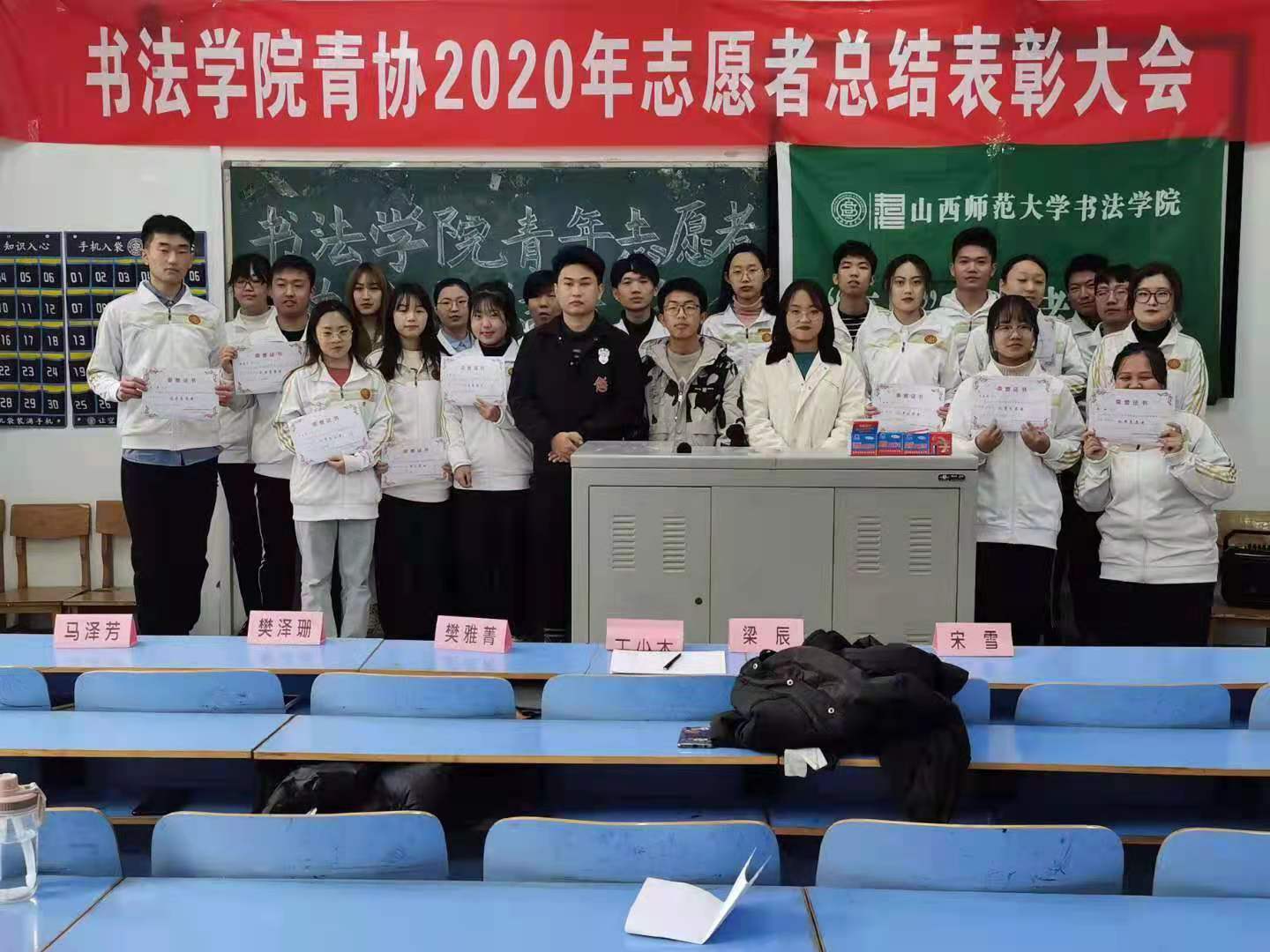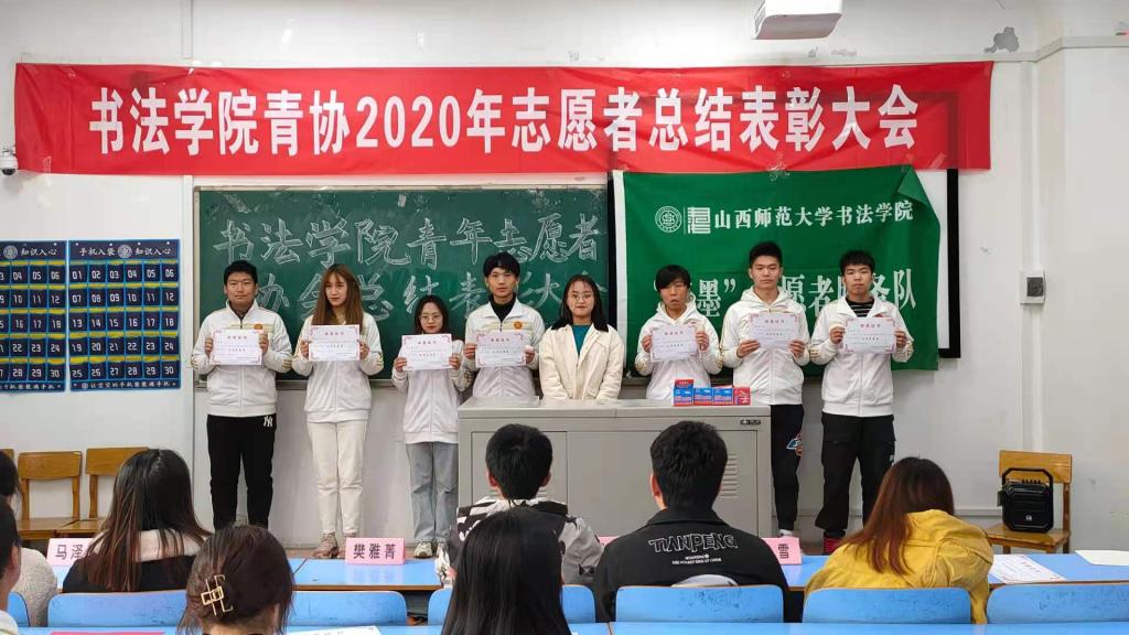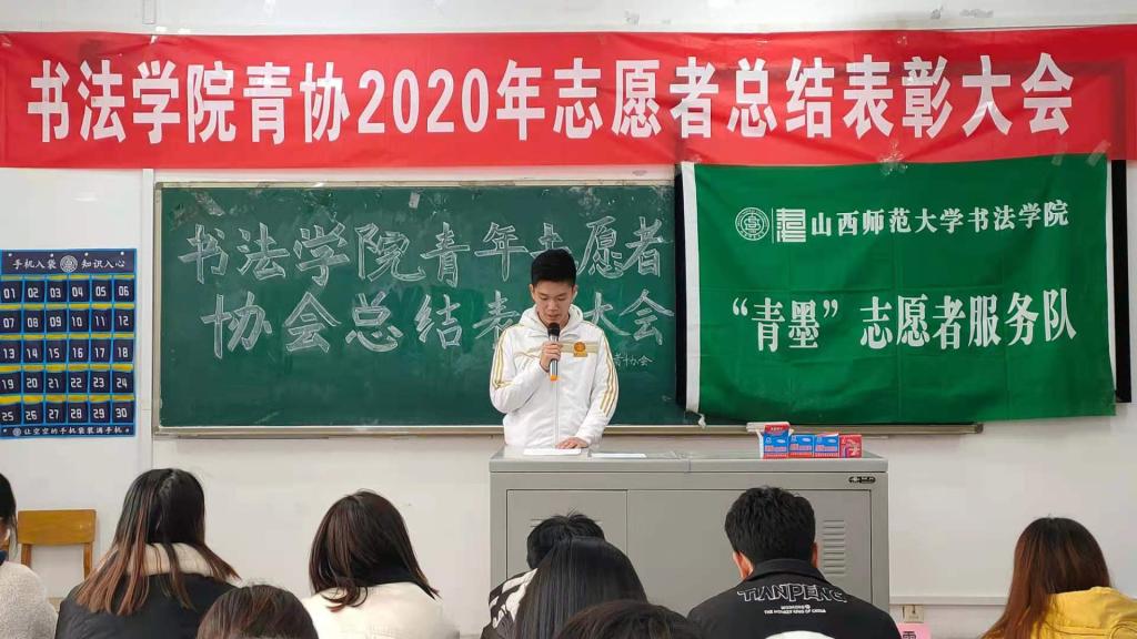 青年志愿者协会在10106教室召开2020年志愿者总结表彰大会。校青协代表王少杰、院学生会执行主席樊雅菁、院青协第一负责人梁辰、院青协各部门负责人及大一大二全体成员均参与了此次大会。