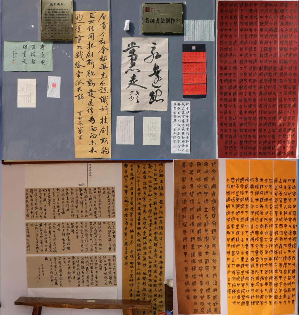 同学们充分发挥专业特色表达对党的祝福和热爱。梁子昊和梁辰同学向大家展示了篆刻“共产党好”和“共产党万岁”,王嘉乐、石晓丹、张龄涵和陈雯鹏几位同学现场书写了“为中国人民谋幸福 为中华民族谋复兴”“用汗水浇灌收获 用实干笃定前行”“中国共产党万岁 祖国和人民万岁”“开天辟地”等书法作品。