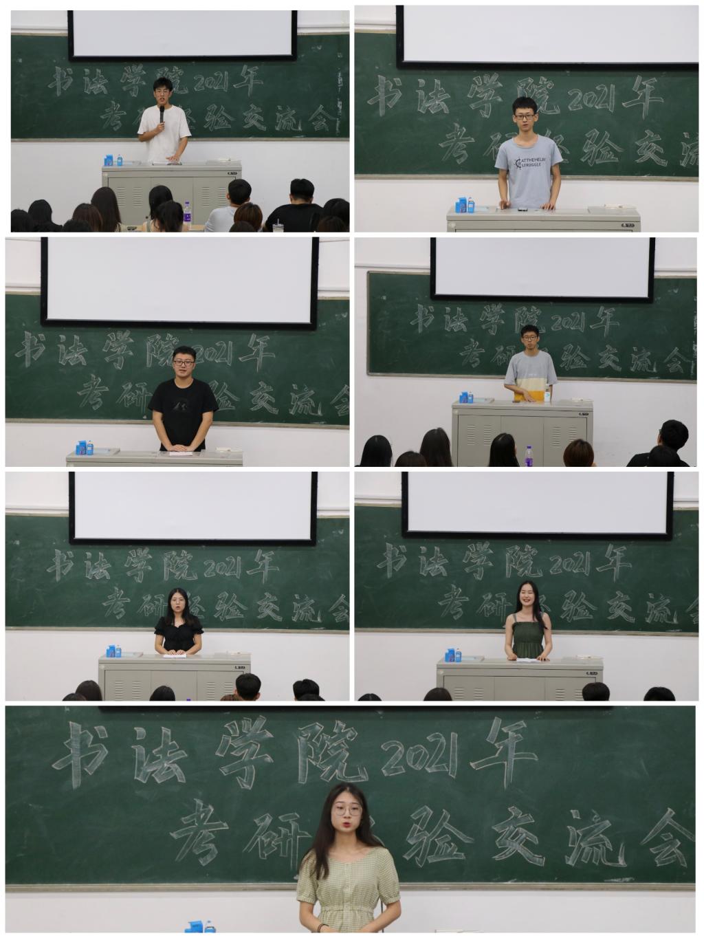 本次考研交流会邀请了张文强(宁夏大学)、马宇焜(首都师范大学)、庞志良(广西艺术学院)、郭欣宇(南京艺术学院)、王淑睿(山西大学)、秦璇(湖南师范大学)、李锐(天津美术学院)等7位2017级考研成功的学依次为低年级学弟学妹们分享他们的考研经验,讲解考研过程中的注意事项,例如考研院校的选择、各科学习方法的使用、各科考试的要求、临考前对自己状态的把握等。分享结束后,现场同学就自己对考研的一些疑惑和问题与大四学长学姐们进行了热情的交流。大家纷纷表示,要向学长学姐们学习,不轻言放弃,为自己的梦想和目标而努力。