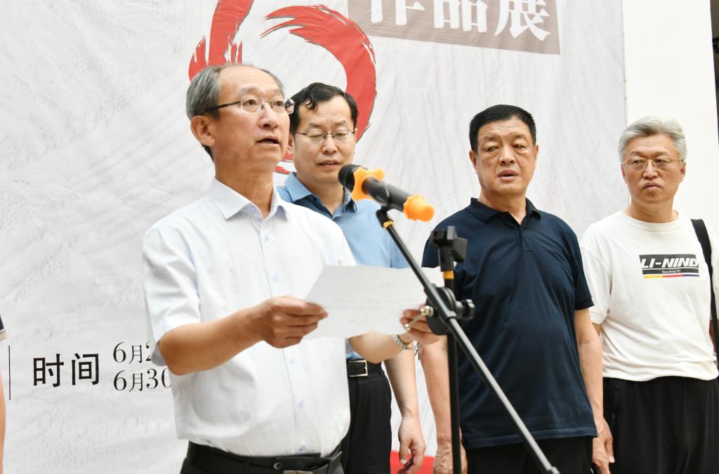 第六届书法篆刻作品展开展。薛珠峰介绍了本次展览从筹备到开展的具体情况。杨吉平宣布了获奖作者名单,与会领导为获奖作者颁发了证书并合影留念。