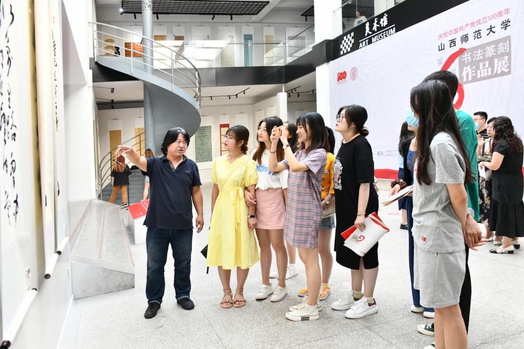 第六届书法篆刻作品展开展仪式在我校美术馆举行。校党委常委、副校长车文明,校党委常委、宣传部部长、蜜桃堂