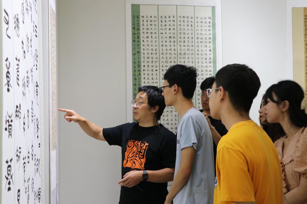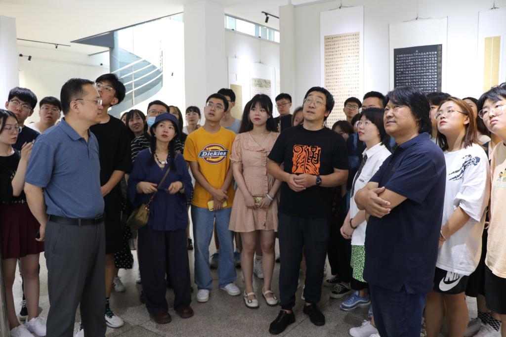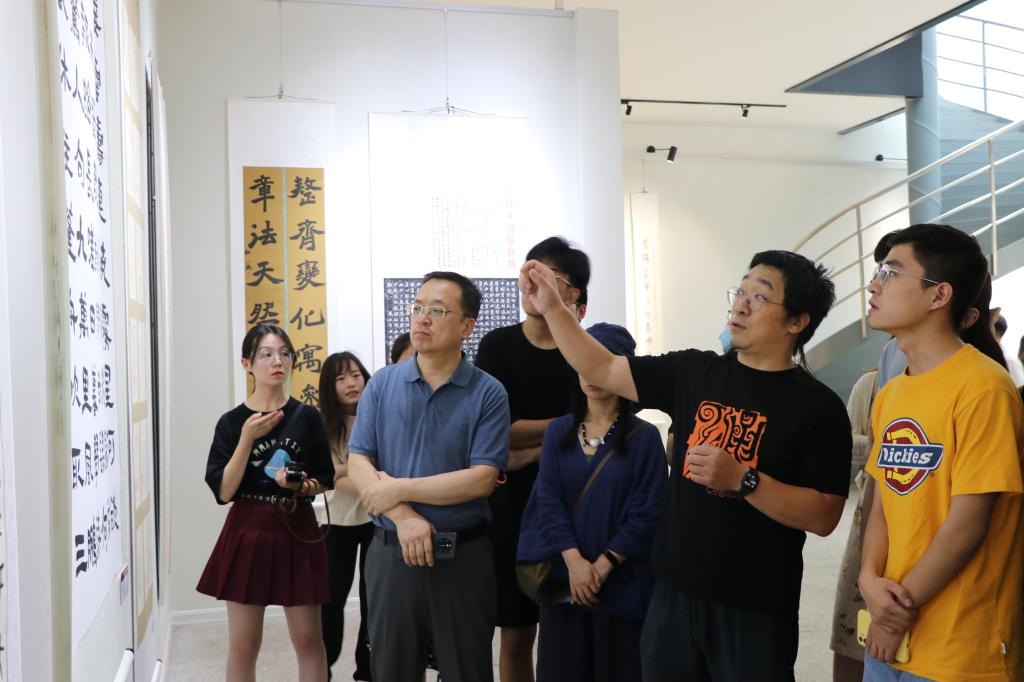 6月16日,我院2021届研究生·本科生毕业作品展在学校美术馆开展。16日下午,中国美术学院现代书法研究中心副教授鲁大东在我院院长薛珠峰、副院长曹亚彬及技法专业课教师的陪同下参观了本次毕业生作品展。
