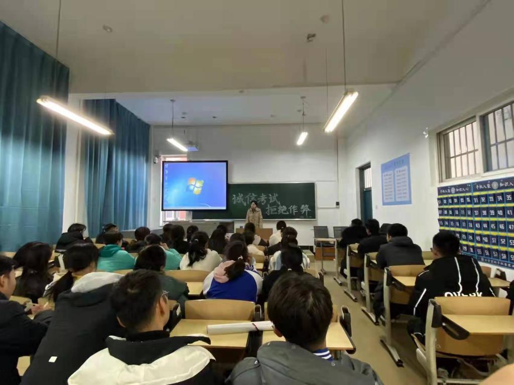 2101班于12月14日下午在南区4101教室召开了“诚信考试,拒绝作弊”主题班会。本次班会由新生辅导员霍红梅老师主持,大一全体同学参加。