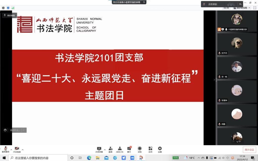 在主题团日活动中,各班团支书带领团员们认真了解了党领导下的中国青年运动史—早期青年团组织的诞生和发展,分享学习了青年英烈的感人事迹,进一步加深了团员们对于中国共产主义青年团的认识。随后,各班团员以团小组为单位互相交流讨论,分享学习的收获和体会。其中,1901团支部还组织团员结合专业特色书写了关于党史、团史和青年奋斗的书法作品,激发了团员们参与活动的积极性和主动性。