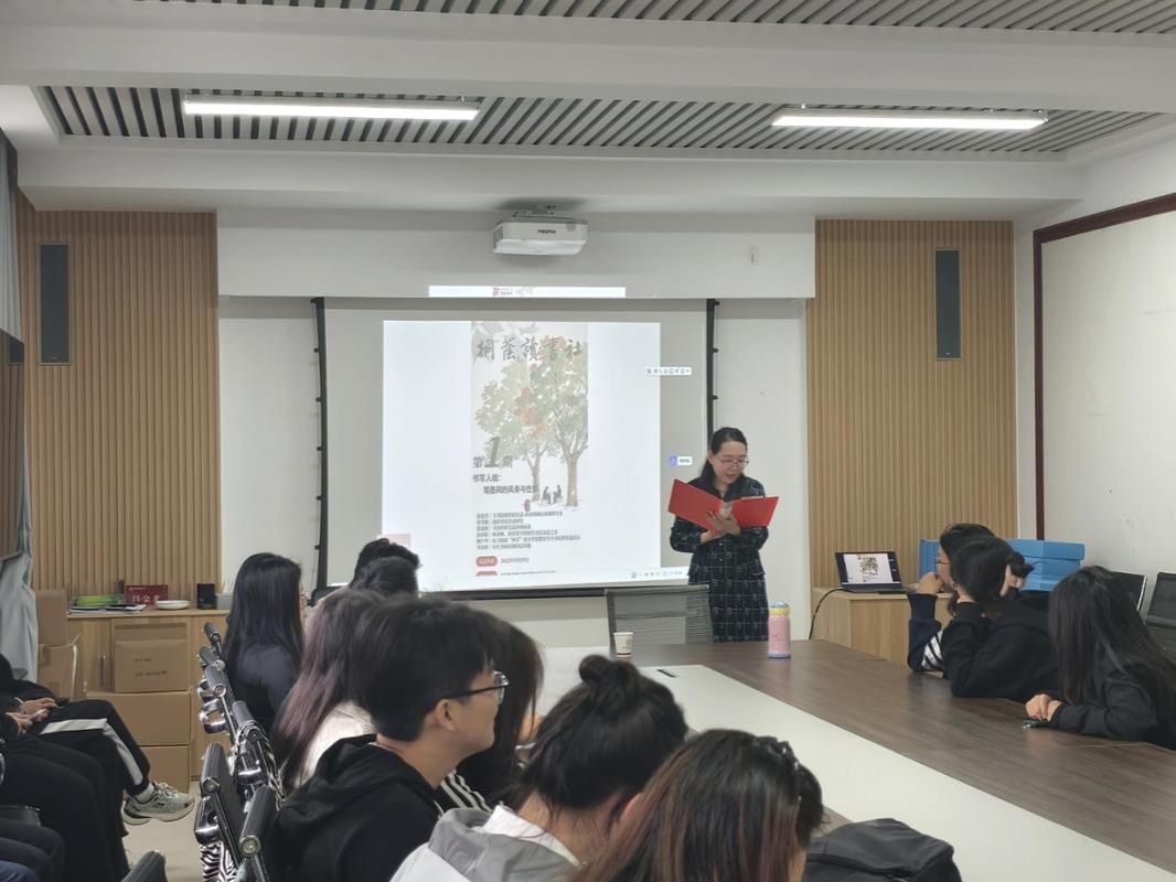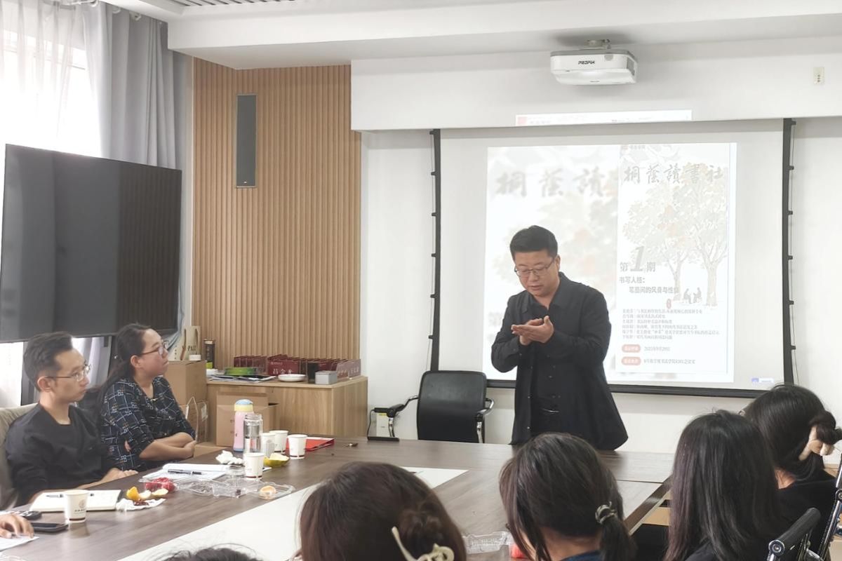 桐荫读书社第一期读书交流活动在学院图书资料室顺利举行。本期活动以“书写人格:笔墨间的风骨与性情”为主题,曹亚彬院长、王文清、赵蓉等老师出席本次活动,周柳伊老师担任主讲人。