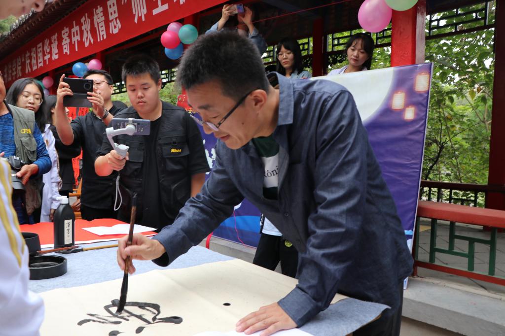 全体师生在莳英园鹿鸣山房举办了“庆祖国华诞 寄中秋情思”师生联谊活动。