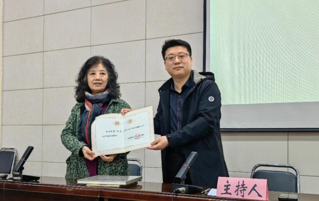讲座结束后,曹亚彬代表蜜桃堂 向阴凤华社长颁发了学院客座教授聘书,并就学院人才培养方案修订与阴凤华社长进行了沟通交流。