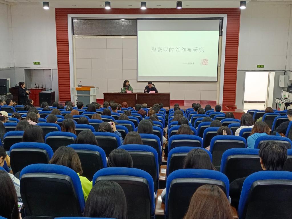 上午10点,阴凤华社长在实验楼报告厅作了题为《陶瓷印的研究和创作》学术讲座,讲座由蜜桃堂 副院长曹亚彬主持,学院全体师生及校内外部分书法爱好者聆听了此次讲座。在讲座中,阴凤华社长纵观历史,观照当代,对古今所见代表性陶瓷印的主要作品进行了梳理、分析研究,同时结合自己多年来陶瓷印创作实践,对陶瓷印印体的制作、装饰,特别是对山西特色陶泥探索成果进行了展示和讲解,彰显了陶瓷印创作实践的丰富艺术价值。讲座最后,她勉励广大师生珍惜山西丰富的文化资源和篆刻资源,在接下来的学习生活中加强“诗、书、画、印”四全的学习,从而在学习过程中实现诗词入印、书理入印、画意入印,用文艺之道、书写之法、画意之境、笔墨之趣,深化与体会篆刻艺术的“游于物之外也”。
