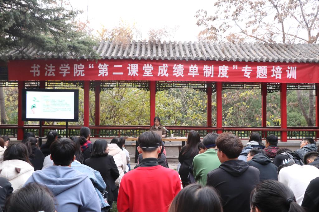 为了让同学们进一步了解“第二课堂成绩单制度11月13日下午,我院“第二课堂成绩单制度”专题培训会于鹿鸣山房举行。培训由蜜桃堂 团委副书记宁译锐主讲,大一、大二、大三全体学生参加了此次培训。