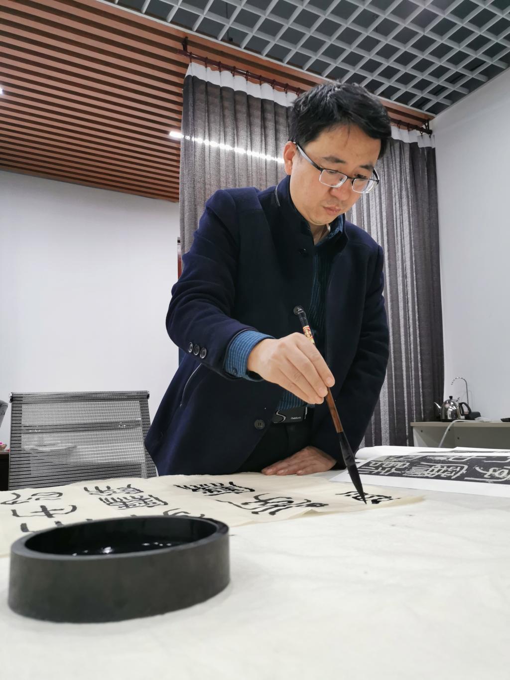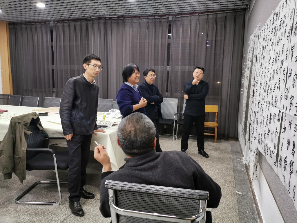 10月28日晚,我院两周一次的专业教师“重温经典”书法艺术交流活动在10505技法教研室如期举行。活动过程中,技法教研室主任王建魁对各位老师的作品进行了细致点评,并对这几次教研活动做了总结。各位老师对这一阶段大篆的学习也分享了各自的感受。