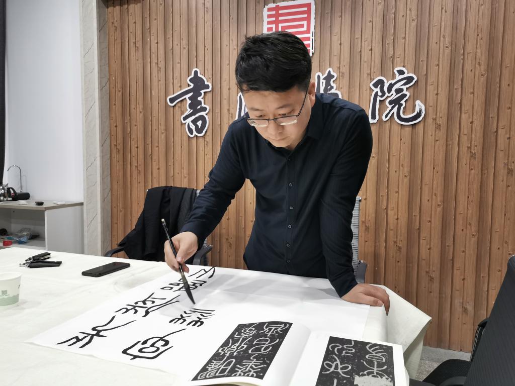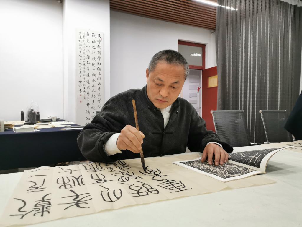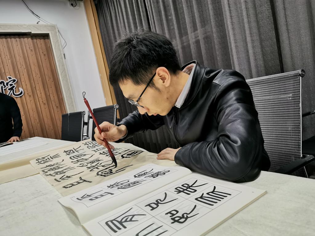 随后,王建魁老师对当前及今后一段时间的小篆的学习做了安排,要求各位老师主要从秦、清小篆进行取法。大家围绕这两个时期的小篆进行了临习与交流