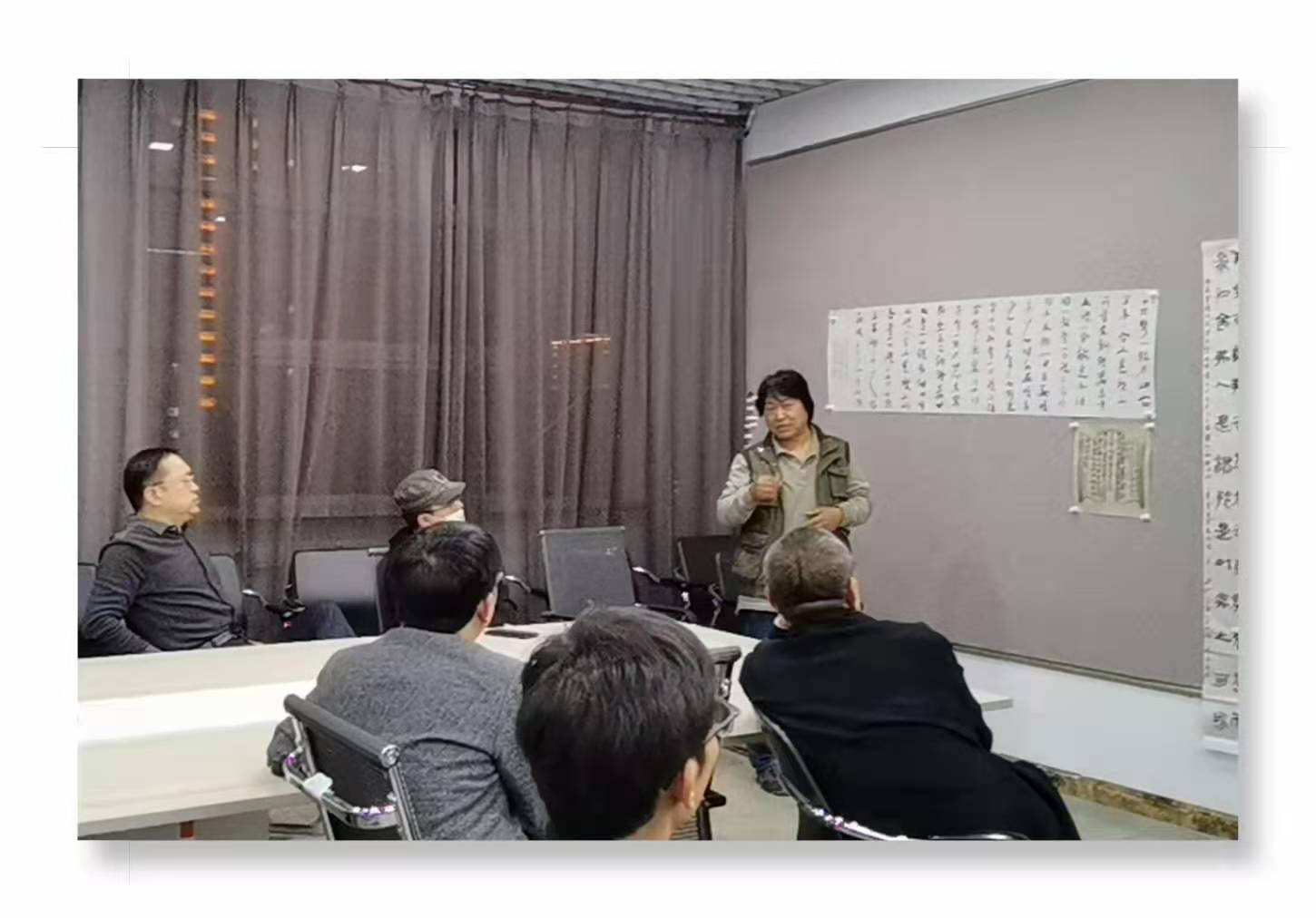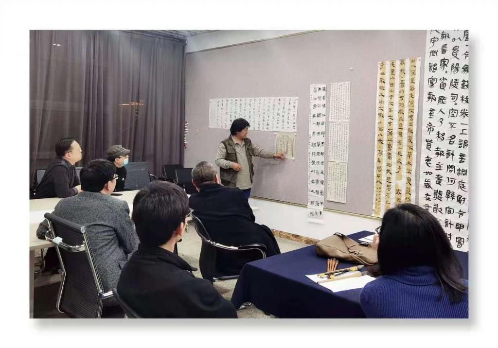 2021年4月28日晚,我院技法教研室活动开展专业教师第十二次“重温经典”艺术交流活动。活动由技法教研室主任王建魁老师主持,薛珠峰、曹亚彬、杨二斌、黄玉岩、丁俊瑞、王文清6位老师参加本次教研活动。本次教研活动,各位老师继续深入学习简帛书,在点评作业过程中对课下临习时遇到的问题进行了交流讨论。薛珠峰院长对本次活动进行了总结。