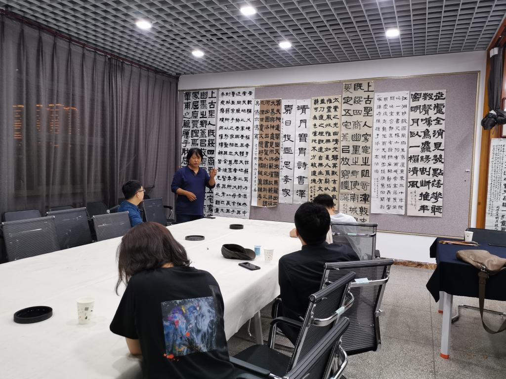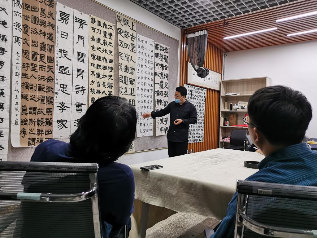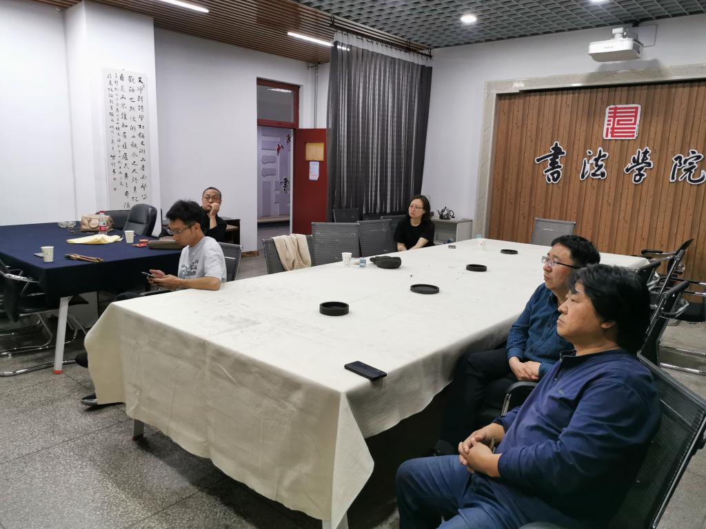 2021年5月19日晚,我院技法教研室活动开展专业教师第十三次“重温经典”艺术交流活动。活动由技法教研室主任王建魁老师主持,曹亚彬、杨二斌、黄玉岩、丁俊瑞、王文清、周鸿鹏6位老师参加本次教研活动。教研活动中,大家对各自临摹的清代隶书作品进行了点评交流。