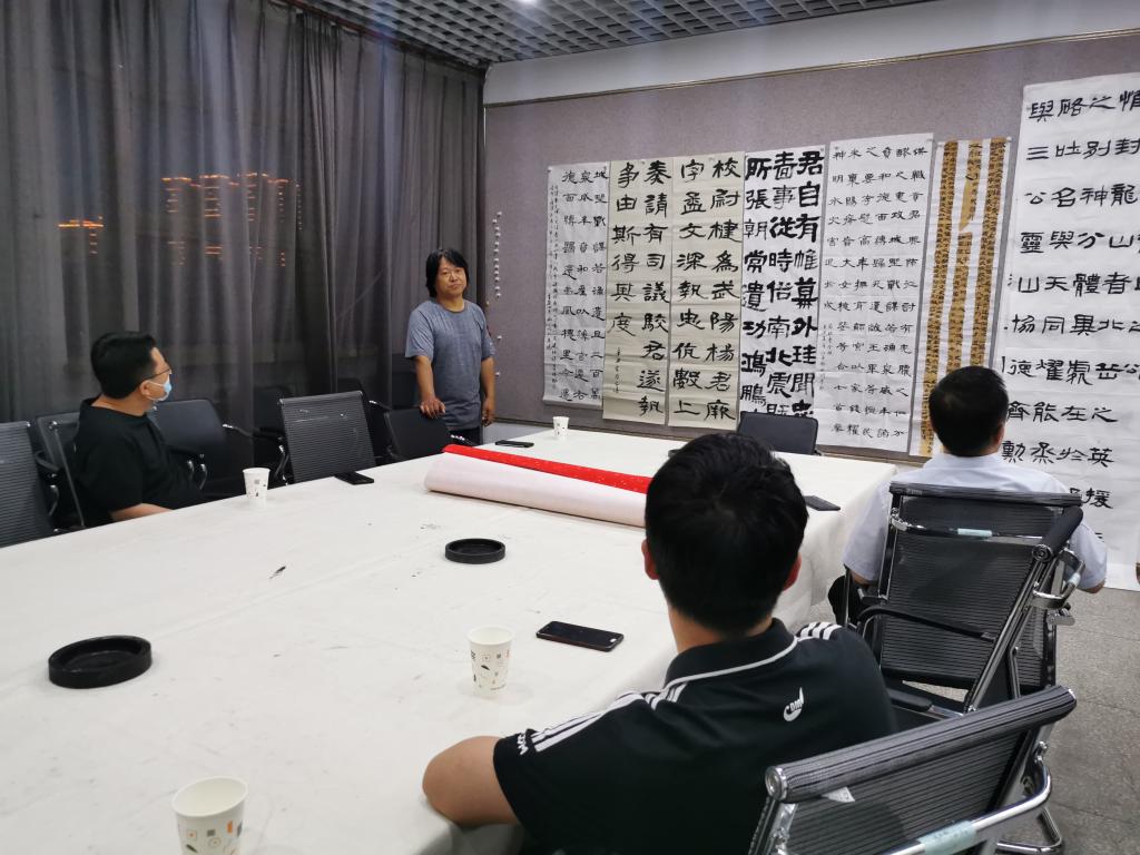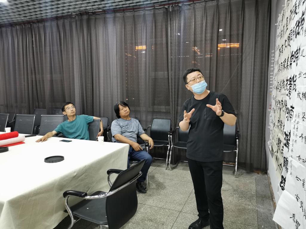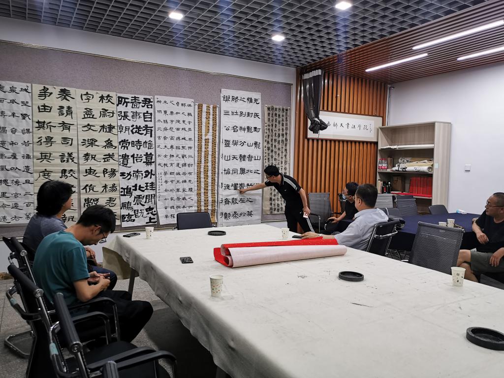 5月19日晚,我院技法教研室活动开展专业教师第十四次“重温经典”艺术交流活动。活动由技法教研室主任王建魁老师主持,薛珠峰、曹亚彬、杨二斌、丁俊瑞、王文清、周鸿鹏6位老师参加了本次艺术交流活动。此次教研活动,大家对各自选定的隶书临摹作品进行了点评交流.院长薛珠峰对作品进行点评总结,进一步明确了今后一段时间的隶书教研学习方向。