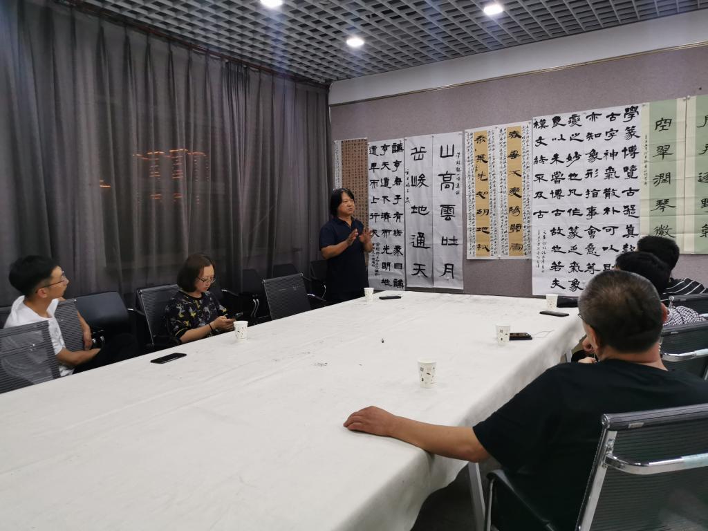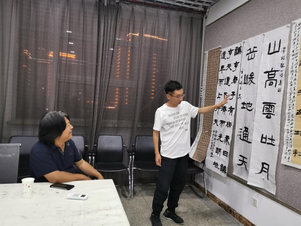 2021年6月16日晚,我院技法教研室活动开展专业教师第十五次“重温经典”艺术交流活动。活动由技法教研室主任王建魁老师主持,曹亚彬、杨二斌、黄玉岩、丁俊瑞、王文清、周鸿鹏6位老师参加本次教研活动。本次活动,大家对隶书创作作品进行了深入交流,肯定了作品中的优点,对作品中的缺点提出了建议。