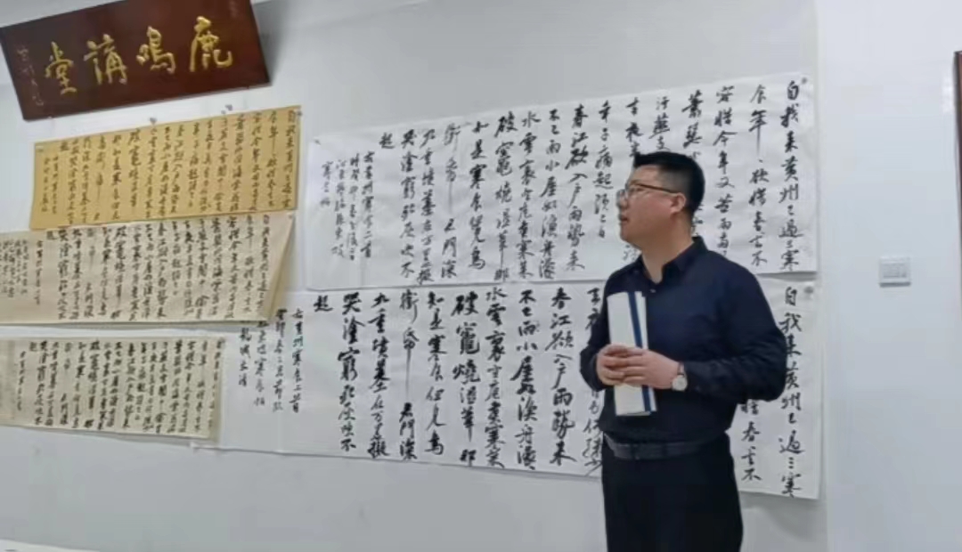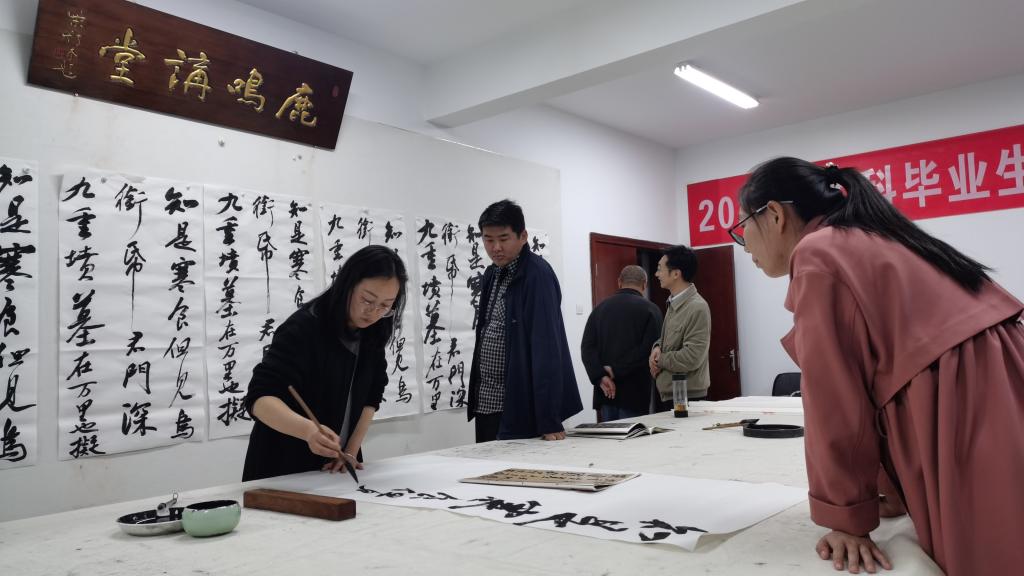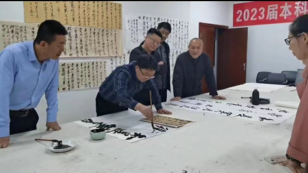 活动伊始,全体教师认真观摩了各位参加人员提交的作品。接着王建魁老师说明了临摹苏轼《黄州寒食帖》的目的和意义,并邀请曹亚彬老师对《黄州寒食帖》进行了讲解。曹亚彬老师根据个人的临创经验,从宏观上阐释了《黄州寒食帖》的艺术特点,并与被誉为“天下第一行书”的《兰亭序》、“天下第二行书”的《祭侄文稿》进行对比,指出了《黄州寒食帖》在情感表达上的特色。讲解结束后,曹亚彬老师对各位老师的作品逐一进行了点评,并提出了富有成效的修改意见。接下来黄玉岩、丁俊瑞等老师介绍了个人的临摹心得,并从不同的角度、不同的侧面分别对各位老师提交的作品进行了直语式的批评。点评结束后,各位老师现场进行书写,相互观摩了不同的临摹方法和书写状态。