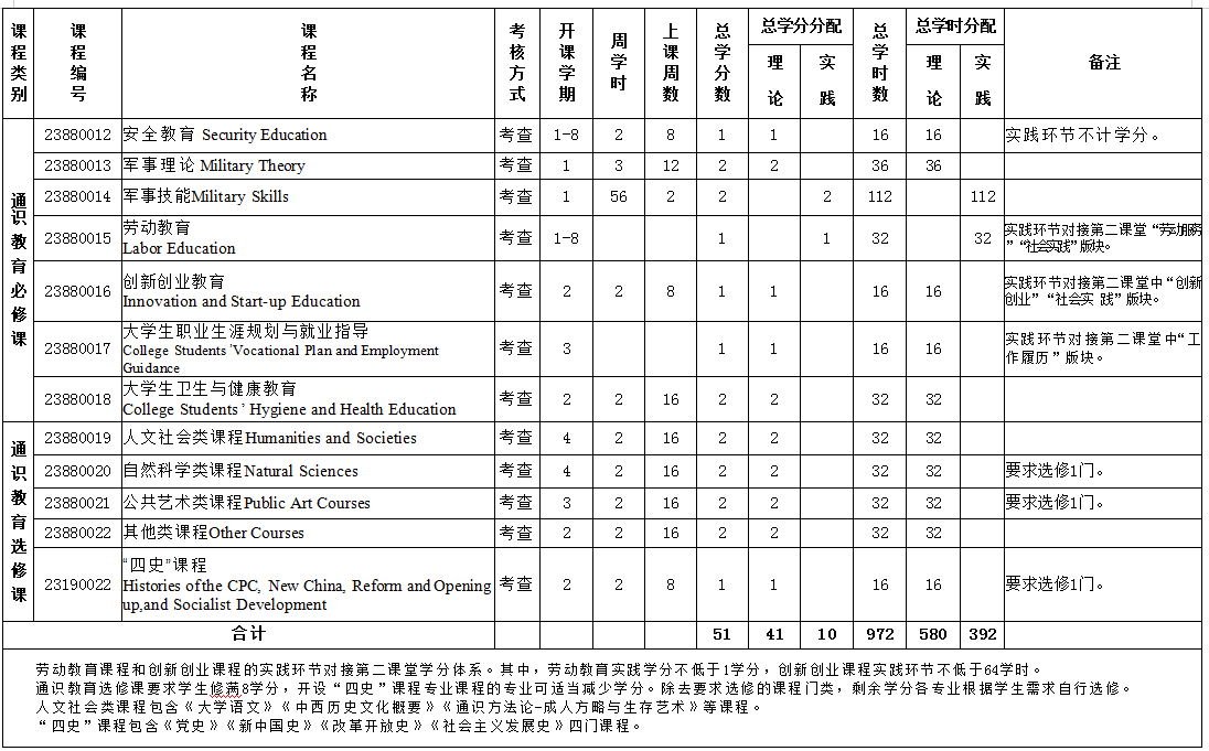 通识 教育 课程 | 通识教育必修课 | 33 | 10 | 28.48 | 51 | 33.78 |
