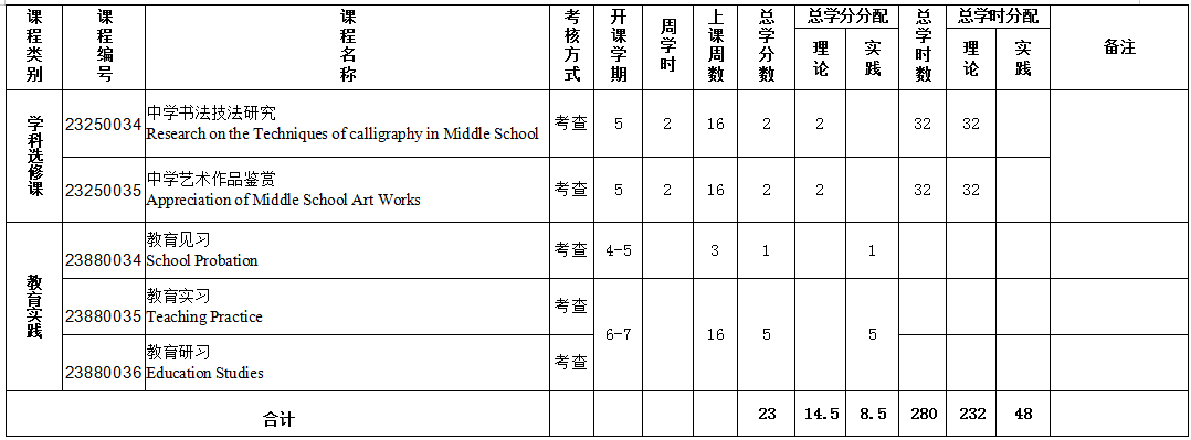 教师 教育 课程 | 公共必修课 | 7 | 1 | 5.3 | 23 | 15.23 |